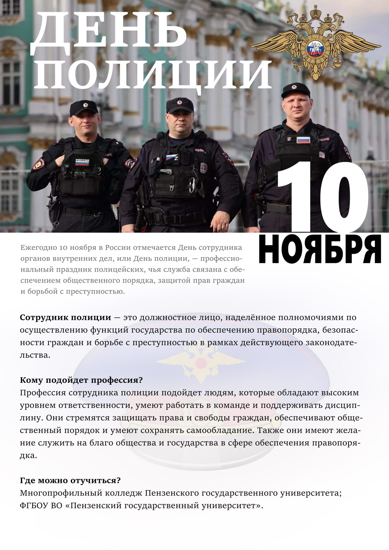👮‍♂Сегодня мы отмечаем День полиции! И хотим выразить нашу благодарность и уважение всем сотрудникам полиции! Ваша работа — это не просто служба, это защита нашей безопасности и спокойствия.