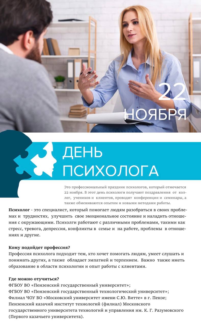 Сегодня мы отмечаем День психолога! Этот праздник призван напомнить нам о важности профессиональной психологической помощи и поддержки.